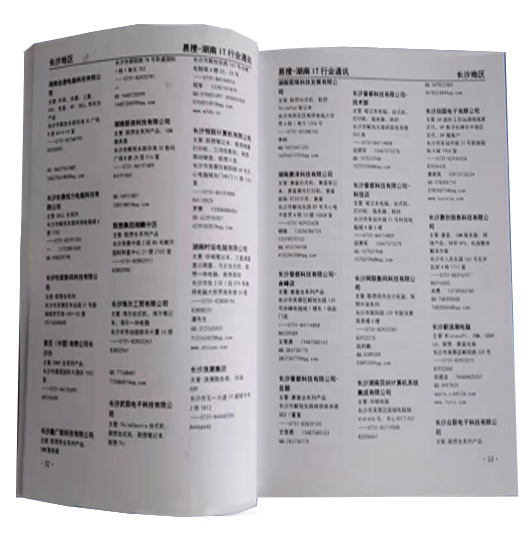 此次的湖南通讯录采用三分栏格式,按照湖南省各个地区编排,其中长沙地区是按电脑城编排的,全书共有320页,商家查找更加方便,更快捷、准确,为您提供更优质的信息与服务,让商家朋友们能够准确快速的找到自己想要的信息,同时本书还收集了长沙、株洲、湘潭、益阳、娄底、常德、怀化、岳阳、邵阳、衡阳、郴州、永州、张家界、湘西自治州13个区市及周边县市的IT商家信息,我们都对数据进行了收集和整理,确保给你最全面的福建IT商家信息。我们内容更包括商家电话、手机、联系人、网址等(QQ、邮箱版本可特别订制,订制请上易搜商城)!!